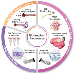Schematic overview of emerging strategies for bio-inspired electronics and neural interfaces