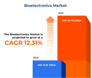 The Global Bioelectronics Market size was estimated at USD 10.10 billion in 2025 and expected to reach USD 11.27 billion in 2026, at a CAGR of 12.31% to reach USD 22.78 billion by 2032, mainly driven by the rising prevalence of chronic diseases and the demand for personalised, patient-centric healthcare solutions.