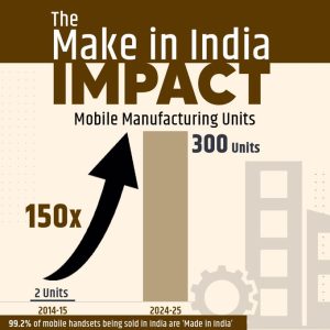 He writes, “ India’s growth story in electronics manufacturing is PM @narendramodi Ji’s vision of developing a comprehensive ecosystem.” He underlines the government’s continuity and effective oversight over the industry, which is leading to sustained development as well as growing impact on the nation and the world. The image he posted shows how the Make in India initiative has brought about a multiplication in the number of Mobile manufacturing units, from 2 in 2014-15 to 300 in 2024-25.