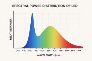 Spectral Power Distribution (SPD) is simply the profile of the white colour which is not visible to our naked eyes, and how much of each colour is present in the visible white light. The final light can be controlled by various means, such as the type of phosphor, how thick the phosphor layer is, or by adding extra coloured LEDs (like red or cyan).