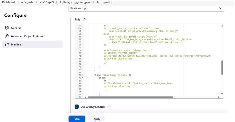 Jenkins is used to remotely send commands to NUCLEO-F401RE board through a computer containing automation scripts (python and shell scripts) which translates commands to configurations and sends it to MCU to change the device under test (DUT) state as explained above. Using this setup, one can manage all HW configurations remotely. The above arrangement successfully enables the developer to remotely perform board programming / flashing, toggling boot switches and configurations on STM32MP157F-DK2.